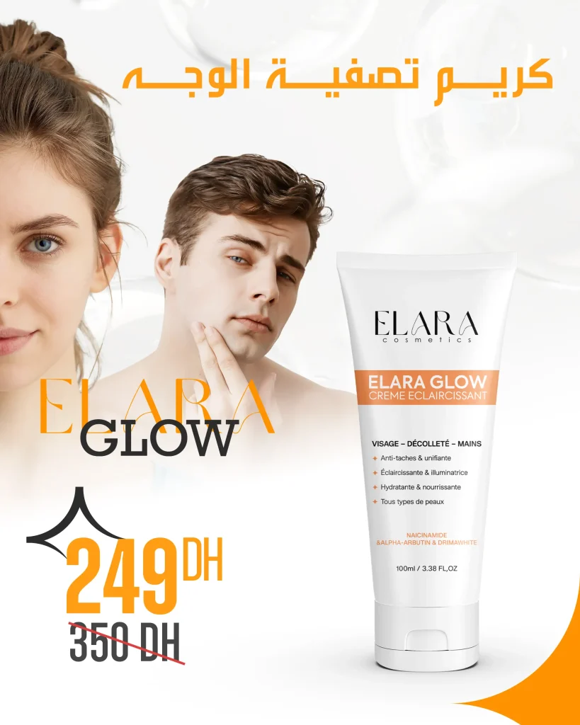 المحتويات: غسول LARA Clean + كريم ELARA Glow + واقي شمس ELARA Protect 🎁